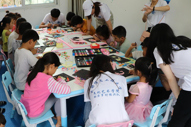 “三下乡”社会实践乡村义务支教课程主要包括书法艺术课、手工绘画课以及游戏互动课。团队成员以饱满的工作热情,与小朋友们进行交流互动和课程指导。切实做到了以各种活动、形式为载体,加大宣传关爱儿童行动的重要意义;广泛开展爱心行动,让儿童感受社会大家庭的温暖;创新儿童互动及交流活动方式,以此开拓其视野与见识。