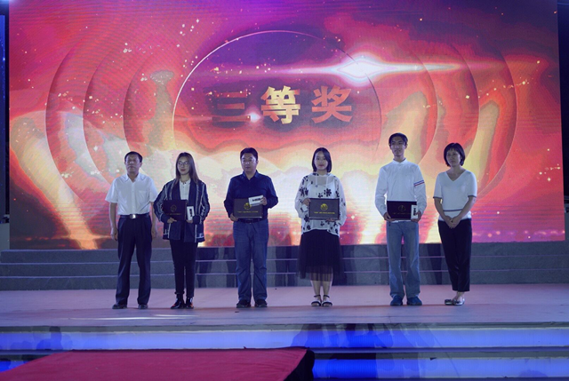 文化艺术学院视觉传达设计三年级学生康艾(左二)代表团队登台领奖