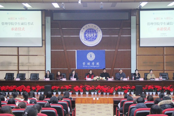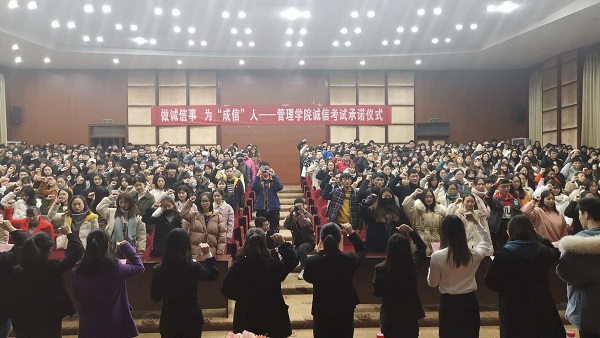 此次诚信考试承诺宣誓仪式,让同学们更加充分认识到了诚信考试、诚信做人的重要性。每一位管院学子都应铭记誓言,镌刻于心,在今后的学习和生活中自觉担任起光荣的责任和使命,恪守“成与大气、信达天下”的校训,践行“尊师、好学、励志、笃行”的学风,积极复习迎考,公平参与竞争,遵守考试纪律,拒绝违纪作弊,诚信塑造品格,诚信收获成功。