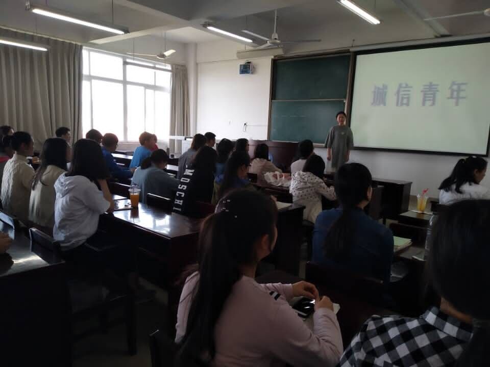 “诚信青年”主题交流会于4月12日晚在九州(中国)第二教学楼举行,校学生会全体成员及各学院学生代表参加了此次交流会。部分学生代表通过会议古今经典案例故事来系统阐述诚信对于每一个人的重要性,如商鞅立木取信获得百姓信任从而推行新法、季礼挂剑了却徐国国君心愿被传为千古佳话、商纣失信加速国家的灭亡、吴三桂失信留下千古骂名等;有一些参会代表发言中又联系到同学们身边许多点点滴滴的事,如学校林荫道下同学们摆的“诚信交易”小摊、校园内挂着印有“诚乃立身之本,信乃道德之基”晨钟暮鼓般的横幅等。生动形象、意义深刻、实实在在的言语深深地烙印在每一个同学心里,希望从思想上激励每位同学将诚信落到实处。