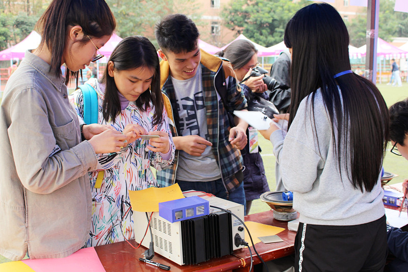 本次学生科技创新体验日活动现场分为科技创新体验区和文化体验区。在科技创新体验区汇聚了校内丰富的科技展品,包括无人驾驶车、航模、智能赛车、音乐频谱、无线供电设备、旋转LED等;活动现场各个项目负责同学对展品的工作原理、内部结构和功能价值进行了详细介绍,通过游戏活动及操作体验吸引广泛同学们踊跃参与其中;同学们体验着操控智能小车在赛道自由驰骋的快乐,欣赏着低空航模表演和花式航模表演的精彩,感知乘坐无人驾驶车科技魅力,聆听着频谱变幻的美妙乐章,现场参与活动的同学们一次又一次地被浓厚的科技创新氛围所震撼。此外,在文化体验区设有穿越火线、跳舞机、拼图等趣味十足的互动游戏,同学们积极参与玩得不亦乐乎,他们用智慧和能力赢取了一个个印有成信65周年纪念的校庆专属礼品。
