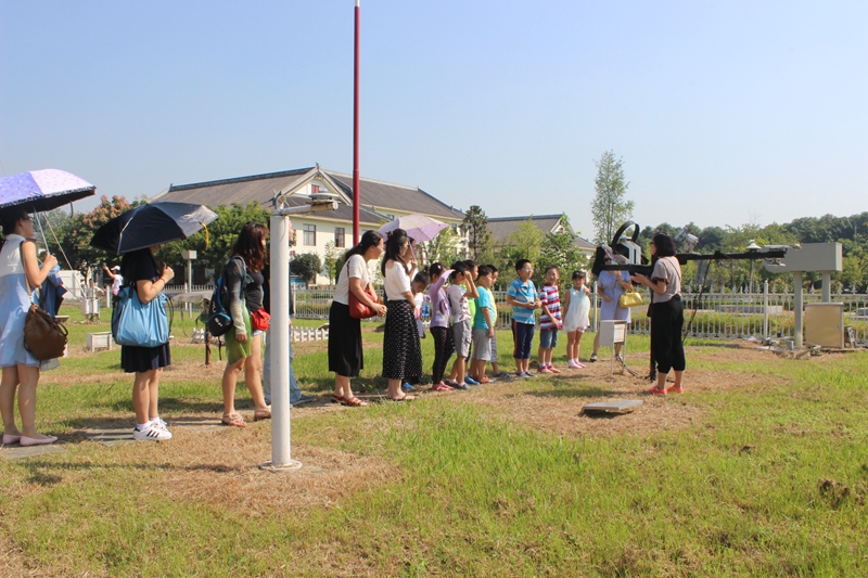 志愿者在气象综合观测场讲解