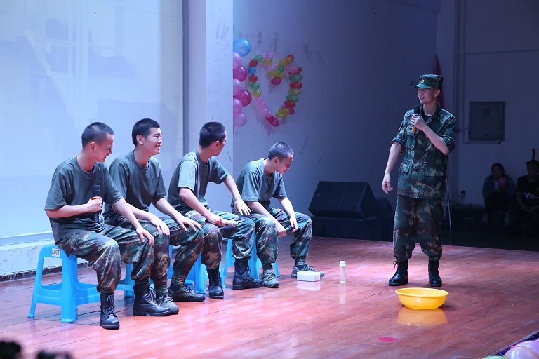 第三篇章——成长:视频《成长》用讲述的方式娓娓述说着同学们所经历的成长,有欢笑,也有泪水,小品《新兵入连》通过诙谐幽默的方式讲述着军人们在部队里的成长历程,由国防生同学带来的动作舞蹈《砺剑军魂》彰显了他们历经磨砺而永不言弃的毅力和勇气。