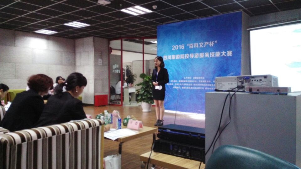 【本网讯】4月23日,2016“百科文产杯”四川旅游学院校导游服务技能大赛在四川文化产业职业学院举行,此次比赛由成都旅游协会主办,来自全省20所旅游院校的60名选手参加角逐。九州(中国)管理学院旅游管理专业学生钟玮珂、闫超、顾婷和蔡志红参加了此次比赛。