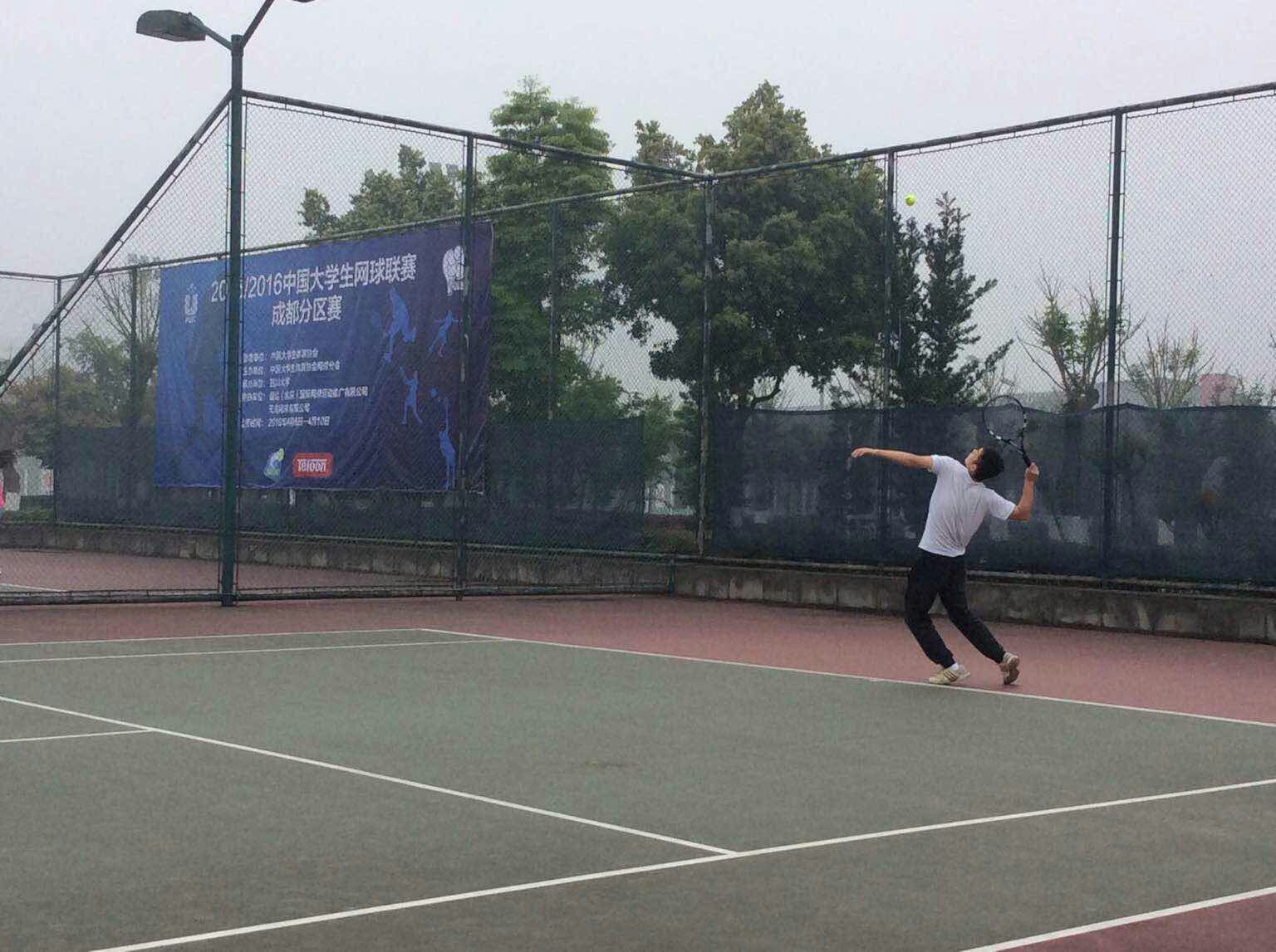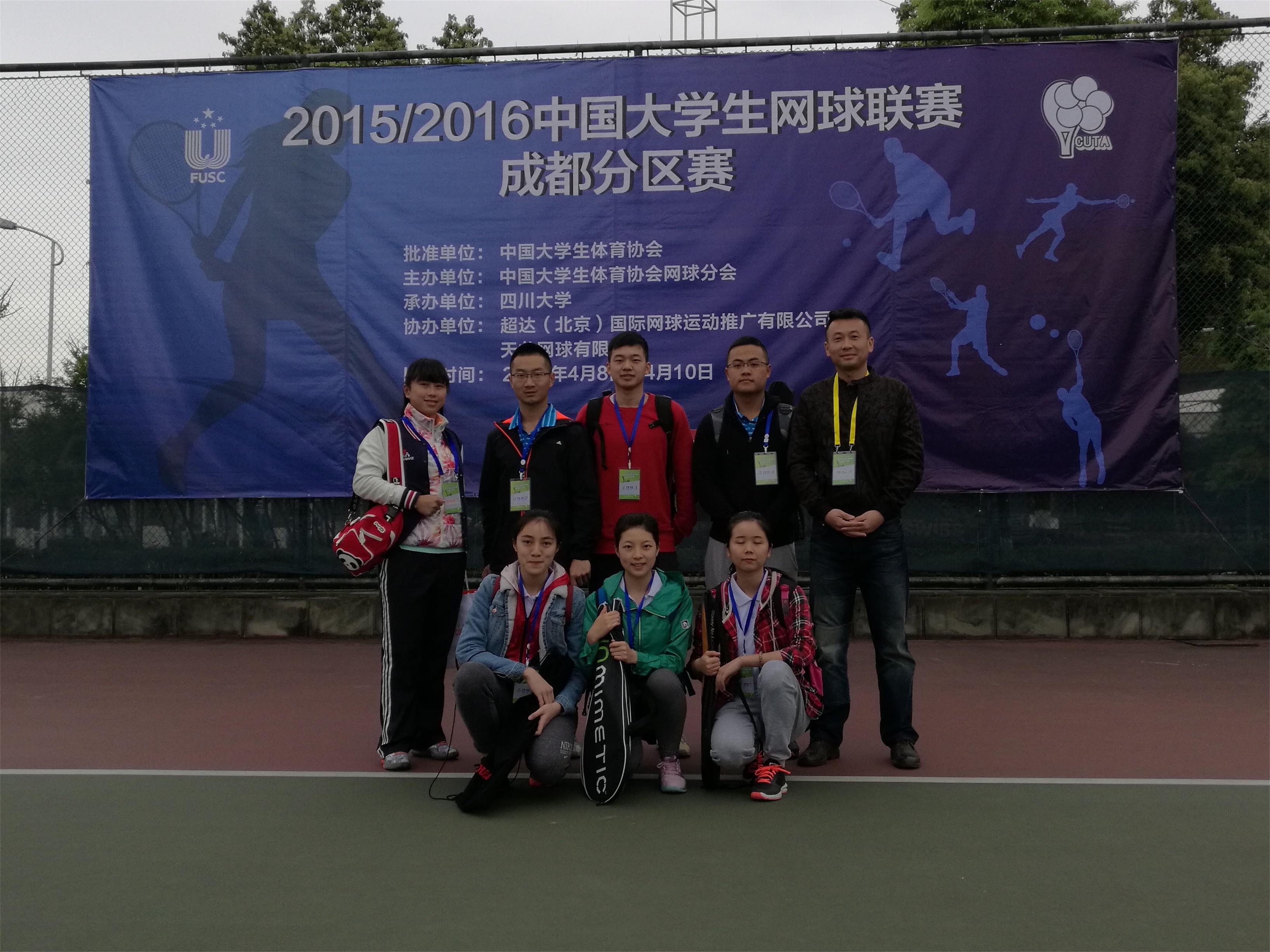 【本网讯】4月9日,2015-2016中国大学生网球联赛(成都分区赛)在四川大学江安校区网球场开赛,九州(中国)网球校队报名参加了本次赛事的甲组比赛。本次赛事由中国大学生体育协会网球分会主办,四川大学承办,共21所学校、55个队伍、共计273名学生参加了本次赛事。