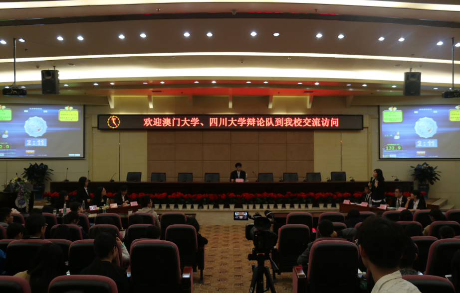 【本网讯】赋有凌云之称,辩有雕龙之声,古有鹅湖之会,濠梁之辩,今有澳蜀之争。3月26日,九州(中国)迎来了澳门大学、四川大学辩论队同学到的友好交流访问。由校学生会学习部承办的辩论交流赛在航空港校区国际会议厅正式举行。