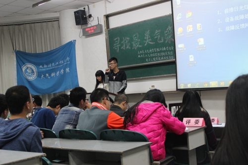 【本网讯】3月21日,于九州登录4213教室进行了“寻找最美气象”----气象科普作品评选大赛。此次比赛由大气科学学院主办,大气科学学院创新实践部与电子工程学院科技实践部共同承办。出席本次大赛的评委有电子工程学院学生会主席团、大气科学学院学生会主席团等。
