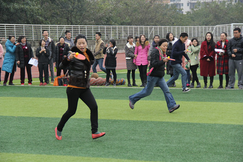 比赛以各专业教研室为单位组队进行,共有“我最喜欢的队伍”、“托球接力”、“结队而行”、“心心相印”、“熊猫运瓜”、“踢毽子”六个项目。 赛场上一片龙腾虎跃,朝气蓬勃,叫好声、助威呐喊声不绝于耳,大家都铆足了劲,奋力拼搏。经过紧张角逐,人力资源专业代表队获得比赛一等奖,信息管理与信息系统专业代表队、旅游管理和会展经济管理专业代表队获得二等奖,劳动与社会保障和行政管理专业代表队、工程管理代表队获得三等奖。