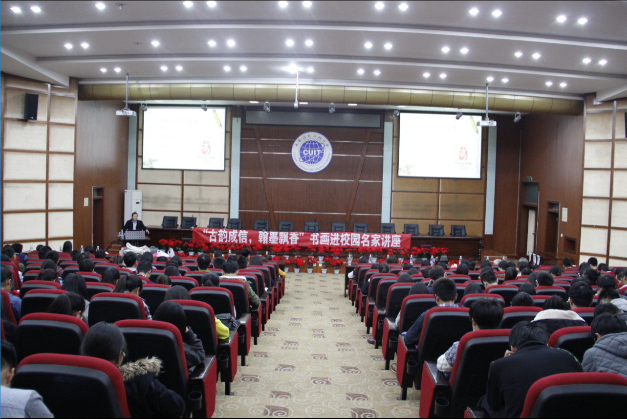19点,在学术报告厅进行了书法名家讲座,主讲人为中国书画家协会会员、国家一级美术师林刚老师。讲座现场座无虚席,林刚以专业的知识和艺术修养,带领同学们进入了 “翰苑珍赏,艺林撷英”的书法艺术天地。最后,并现场题字,书写本次活动主题“古韵成信,翰墨飘香”八个大字,为第七届大学生文化艺术节—传统书画进校园活动画上圆满句号。