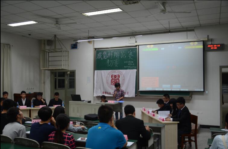 【本网讯】10月14日晚,由校团委,校学生会主办,校学生会学习部,学生辩论爱好者协会协办的“成信杯”辩论赛在2302教室准时举行。参加本次比赛的辩论队分别为计算机学院,资源环境学院。