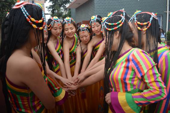 随着动感的音乐响起,孩子们的目光立马被舞台上酷炫的舞蹈动作吸引,这便是志愿者们带来的第二个节目——街舞《梦魇》。志愿者们化身青春的使者,舞动起自己的身躯,用自己的头顶、手臂、腰肢、秀腿;用他们轻捷的舞步,四射的激情,伴着强劲的节奏,舞起来。洒脱投入的舞姿引得台下喧嚣沸腾。一个完美的定格,舞蹈与音乐戛然而止,台下响起热烈的掌声,孩子们连连拍手叫好,意犹未尽。与此同时,在他们的掌声中又迎来了志愿者们的第三个节目——藏舞《溜溜康定溜溜情》。音乐响起,立即渲染了整个舞台气氛。艳丽的服装,灵动的身形,志愿者们用轻捷的舞步传达出别样的民族风情。富有力量又不失美感的舞姿伴着细响的铃声在一个优美的集体造型定格,结束了整个表演。