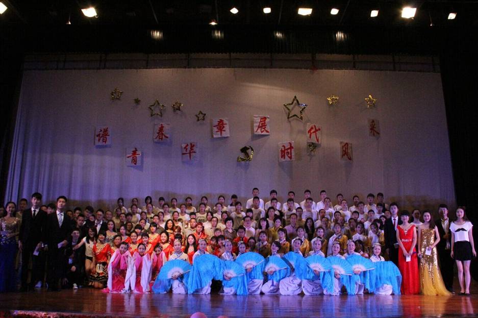 第二项为纪念五四运动96周年的文艺演出。由校啦啦队、商学院舞蹈队带来的青春洋溢的啦啦操揭开了文艺晚会的第一幕,也迅速激发了现场观众热烈的兴致。在接下来的表演中,师生歌曲联唱增加了台上台下的互动。在班级风采大赛中表现出色的班集体也再一次献上他们独有的风采。发人深省的法律小品,充满民族特色的藏族舞、竹竿舞,极富江南韵味的青花瓷舞蹈,婀娜多姿、古韵十足的惊鸿舞等将晚会不断推向新的高潮。最后,晚会在师生大合唱“最美的歌儿唱给妈妈”的动人歌声中落下帷幕。