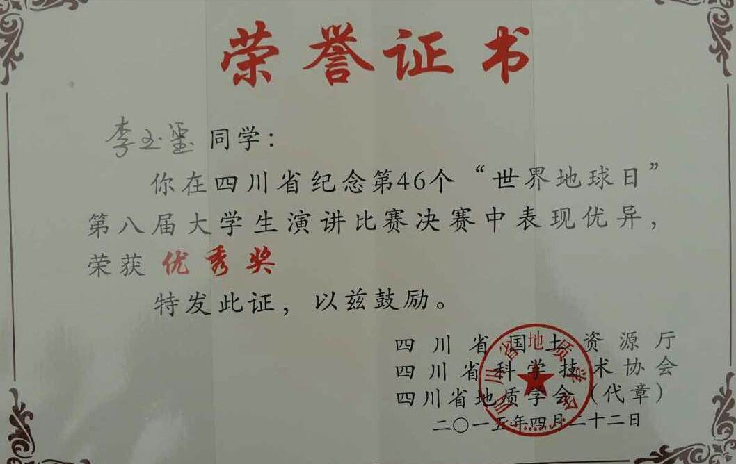 【本网讯】为纪念第46个“世界地球日”,近日,四川省国土资源厅、四川省科学技术协会、四川省地质学会共同主办了第八届大学生演讲比赛,有来自四川大学、绵阳师范大学、西南民族大学等省内16余所高校的180余名学生代表参加比赛。