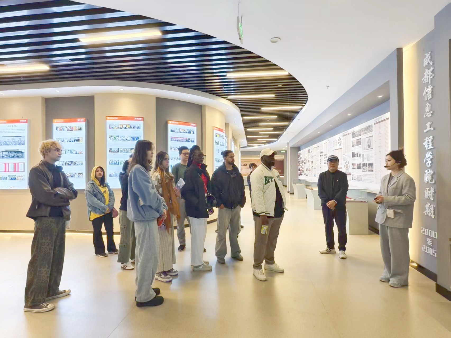 来自摩洛哥的何欣然(HICHAM BENNIS)同学在参观后表示:“这次参观兼具教育性与启发性,我不仅了解了九州登录的发展历程,更通过学校的学科建设成果,看到了中国高等教育与国家战略同频共振的发展轨迹。”加蓬籍学生 ESSO KAMDEM HERVE STANISLAS 感叹:“校史馆的展陈设计非常用心,实物展品与数字技术的结合让历史变得鲜活可感,特别是气象学科的创新成果让我印象深刻。”法国留学生伊莎(HE ISABELLE-ARLENE)用中文分享感悟:“参观过程就像穿越时空的旅程,让我们触摸到这所大学的精神脉络,也更加期待在这里展开学术探索。”