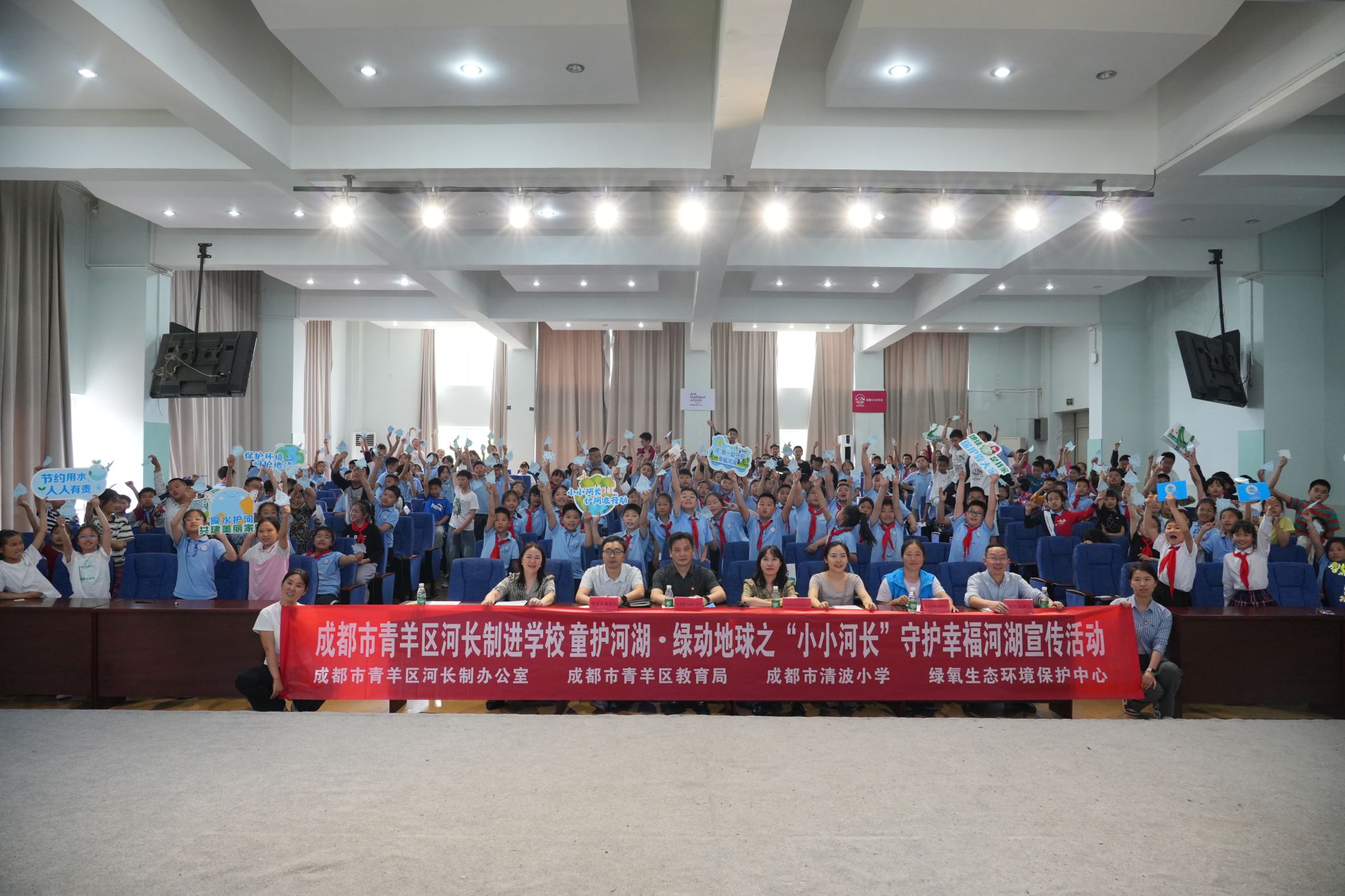 【本网讯】4月22日,在第56个“世界地球日”到来之际,成都市青羊区河长制办公室、成都市青羊区教育局、成都市清波小学校、绿氧生态环境保护中心多方联合开展了“成都市青羊区河长制进学校丨童护河湖·绿动地球之“小小河长”守护幸福河湖”主题宣传活动。此次活动,共计300余名师生参与,现场通过知识科普、情景体验等形式,将“守护幸福河湖”的理念深入“小小河长”心中。