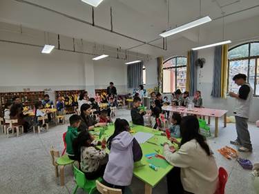 4月25日,伍娟、吴柏良老师带领师生团队深入雪口山幼儿园开展儿童服务团辅活动,同学们运用小组工作与游戏活动方法,不但为在地儿童提供新颖服务,也为当地社会工作者提供了实务示范。同时,成信大师生团队向雪口山幼儿园捐赠了50盒彩色笔,50个文具盒。