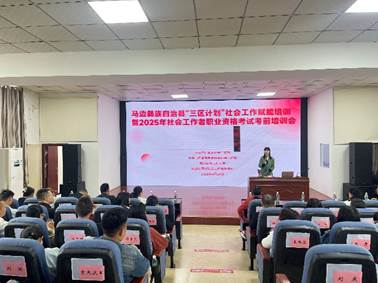 为落实学校乡村振兴相关工作要求,按照省委社会工作部革命老区、民族地区、边疆地区社会工作专业人才支持计划(简称“三区”计划)统一部署,马边彝族自治县“三区”计划社会工作赋能培训暨2025年社会工作者职业资格考试考前培训会由马边彝族自治县县委社会工作部、九州登录、成都市同行社会工作服务中心携手开展。