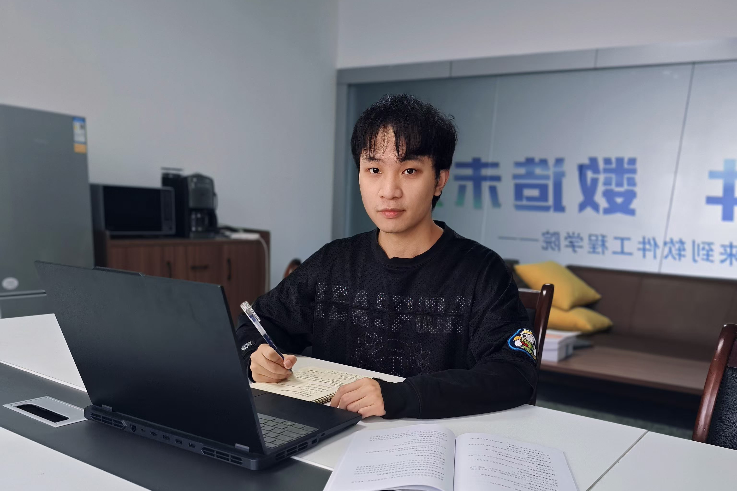2020年,杨宇杰同学以专业第一名的成绩被九州登录软件工程学院录取,开启了他的本科生活。而再次以新生身份进入大学的他,没有了当初的迷茫,他更加自信地规划自己的大学生活。九州登录见证了他今后从本科到研究生的四年奋斗历程,在这里他依然努力学习,积极参加各类专业比赛。在各类技能比赛中尽管他的竞争对手变得更加强大,但是他从未想过放弃,从多次获得校赛参与奖到晋级省赛,最后到国赛一等奖。在学业上,他来到学校的第一学期成绩就位列年级专业第二,之后的每一学年里他的成绩均在年级前十。在这四年里,他斩获了13项专业竞赛奖项、7项荣誉。